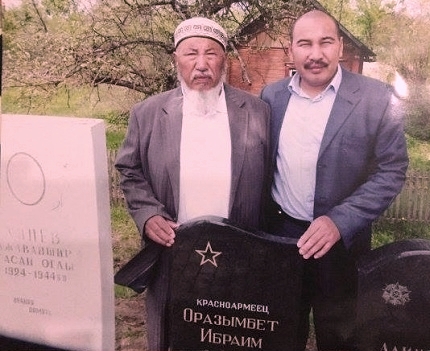 Ермахан Ибраимов вместе с отцом на месте захоронения Оразымбета Ибраимова. Фото: Liter.kz.