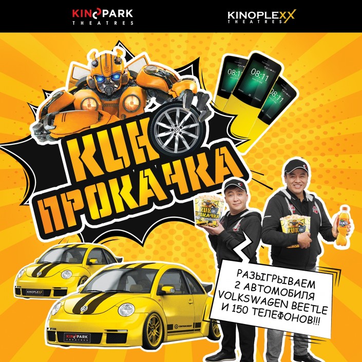 По случаю выхода в прокат фильма "Бамблби" компания Kinopark Theatres запустила акцию, победители которой получат два тюнингованных автомобиля Volkswagen Beetle.