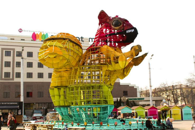"Белка, как житель города, также поддерживает вас в борьбе с пандемией. Маска - это всего лишь символ. А ведь главным является единство в данной ситуации", - написала в Instagram продюсер арт-объекта Майра Измайлова.