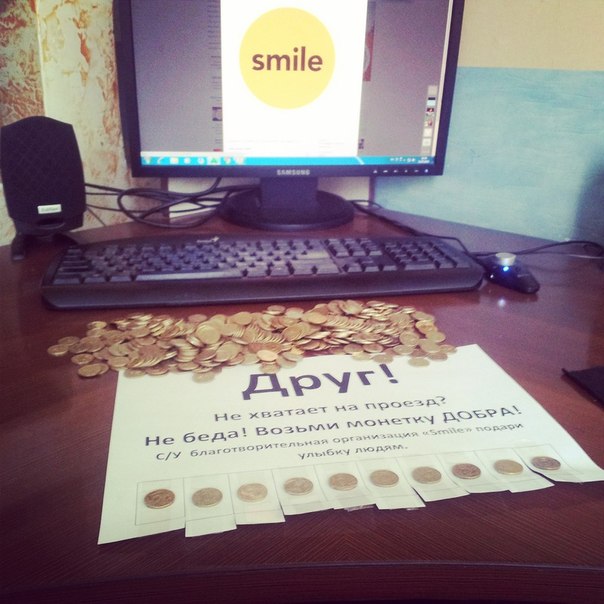 Необычные объявления гласят: "Друг, не хватает на проезд, не беда - возьми монетку добра!". Под надписью скотчем приклеены монеты номиналом в пять тенге. Любой желающий, у кого недостаточно мелочи для нужной суммы на проезд, может "оторвать" себе монетку. Акция особенно кстати, когда горожанам не хватает мелочи для оплаты через валидатор, ведь аппарат не принимает крупную валюту, а разменять деньги перед посадкой не всегда удается. Сейчас по городу на 45 остановочных комплексах размещены "монетки добра". Все они расположены по проспекту Абая.