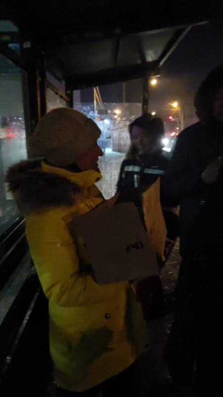 Поздним вечером волонтеры обходили остановки. Встречая там людей, предлагали им горячий чай и выпечку. Они заходили даже в салоны автобусов, чтобы угостить кондукторов, водителей и пассажиров. Свою акцию волонтеры назвали "Горячий чай".