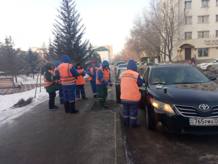 Сегодня волонтеры продолжили свою акцию. Они связались с начальником дневной смены коммунальной службы и согласовали свой выезд на одну из улиц, где рабочие занимались уборкой территории.
