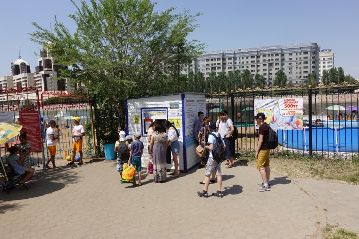 Чтобы еще лучше охладиться, здесь продают мороженое и напитки. Например, этот стаканчик стоит 200 тенге.