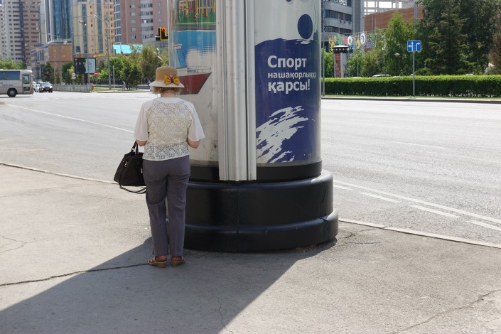 Сложнее в эти часы людям, ожидающим автобусы на остановках. Им приходится в буквальном смысле ловить тень.