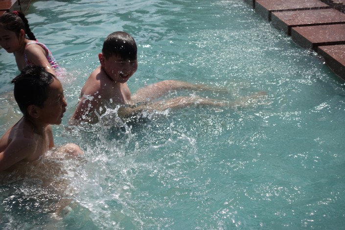 Так спасаются от жары в городском парке.