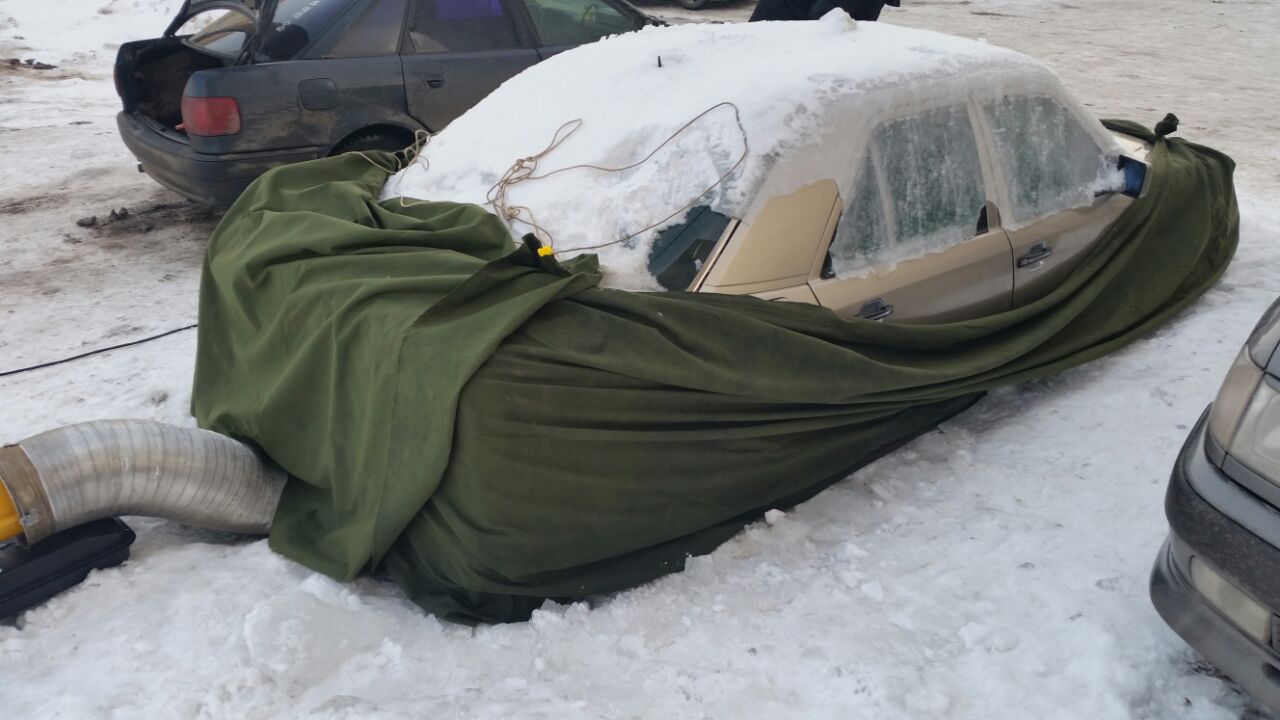 Нашлась хозяйка "ледяного" авто в Астане Специалисты отогрели колеса авто тепловой пушкой. Затем машину на эвакуаторе отогнали на СТО. Фото Tengrinews.kz