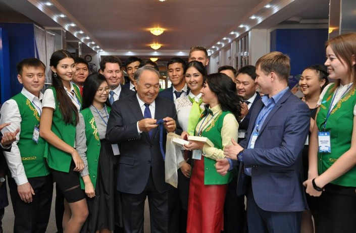 Во время встречи студентка 4 курса Римма Ковалева подарила Назарбаеву именной галстук-бабочку, который изготовила сама.