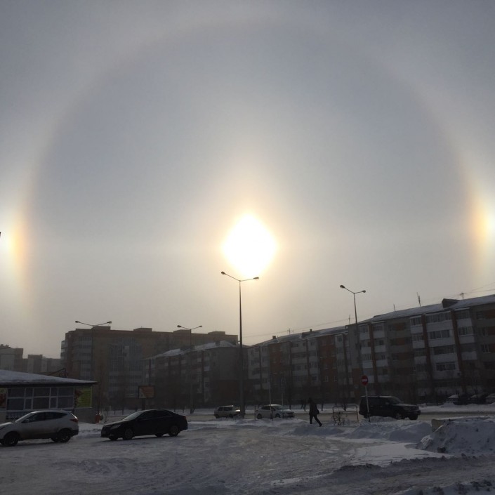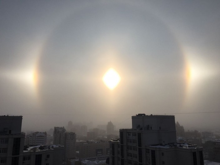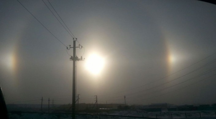 В 2015 году жители Караганды могли также наблюдать феномен гало. За счет иллюзии кажется, что в небе всходит не одно, а три солнца. Видеозаписи необычного оптического эффекта карагандинцы выложили в YouTube и соцсети.