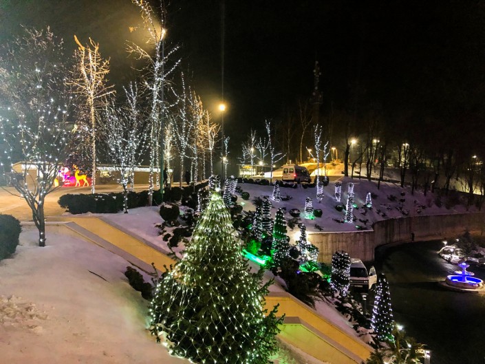 В караоке "1100", именно на этом уровне расположено заведение - 1100 метров над уровнем моря, нет депозитной системы, здесь с радостью примут гостей и предложат изысканные блюда и напитки. В 00.00 в парке будет новогодний салют.