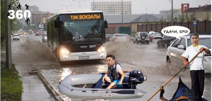 После назначения Бахыта Султанова на пост акима Астаны в Сети появился мем о "передаче" должности. Авторы картинки обыграли ливень в столице, "поплывшие" автобусы и астанчан на надувной лодке