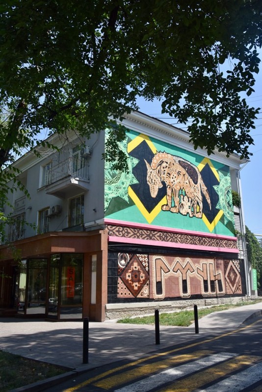 Новый мурал с "Тенгри" украсил фасад дома в Алматы