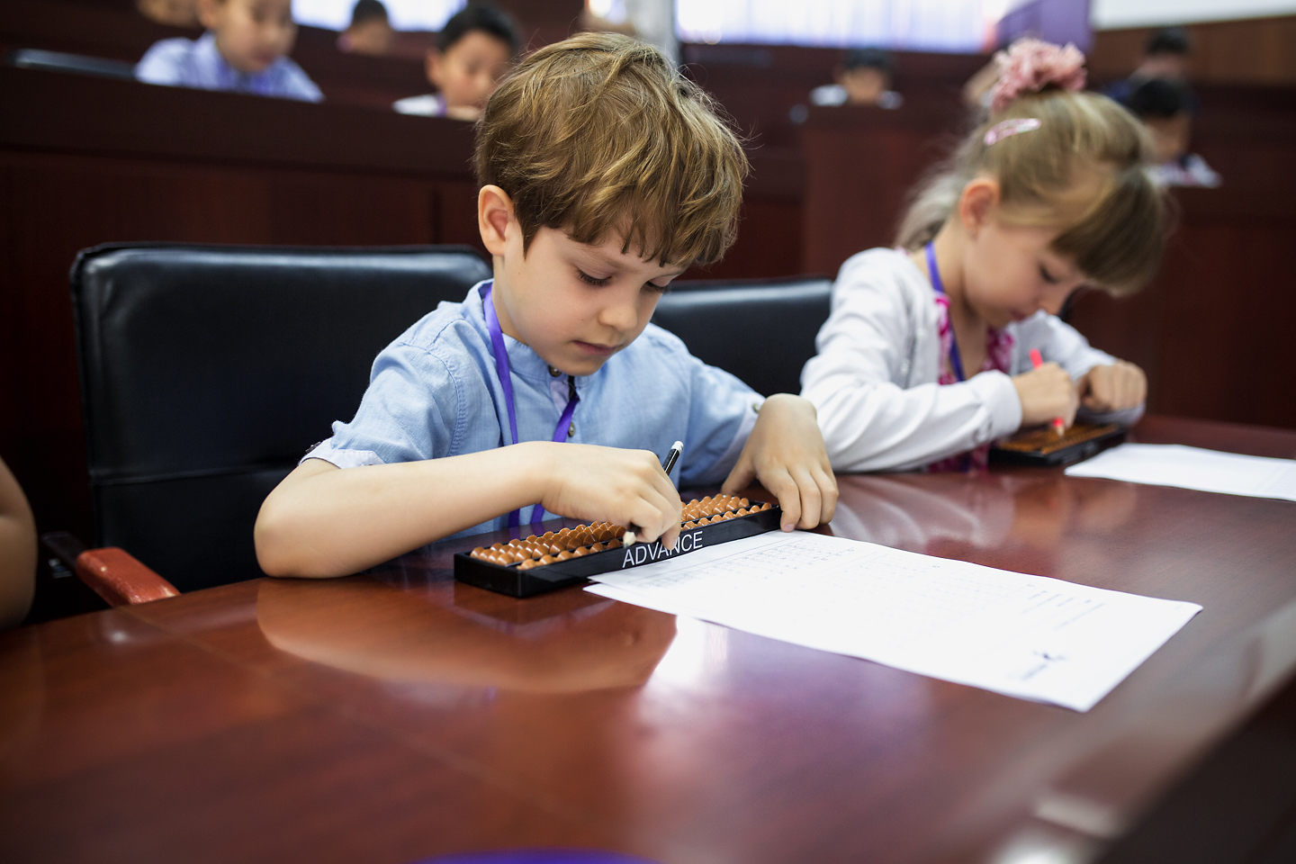 В олимпиаде приняли участие около 200 учеников-гениев центра интеллектуального развития Advance. Дети от 6 до 16 лет продемонстрировали свое умение за считанные секунды работать с огромными числами, они складывали и вычитали многозначные числа в уме и на специальных счетах (абак).