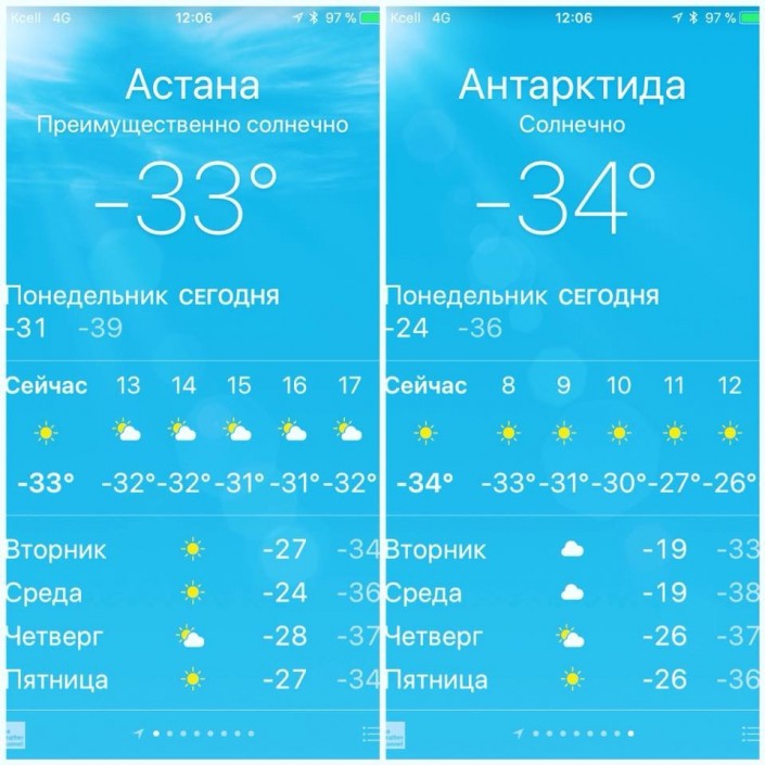Так, в Сети уже начали сравнивать погоду в Астане и Антарктиде.
