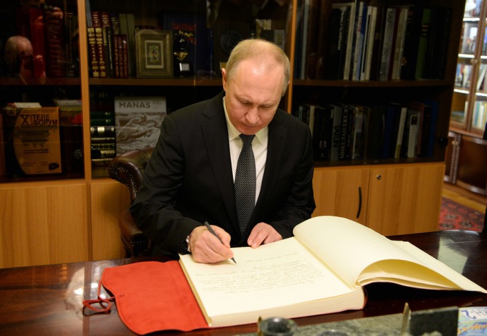 28 марта президент России Владимир Путин совершил визит в Кыргызстан, в рамках которого вместе со своим кыргызским коллегой Сооронбаем Жээнбековым посетил дом-музей писателя Чингиза Айтматова в Бишкеке, пишет АКИpress.