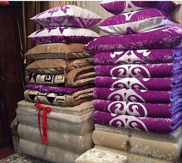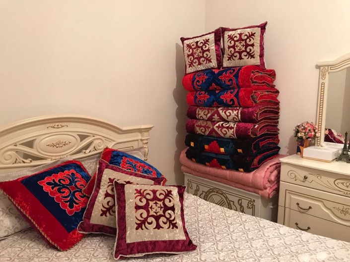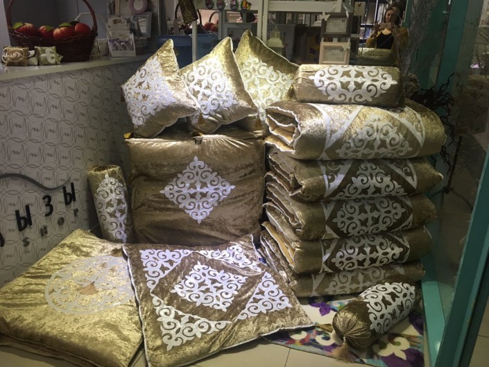 "Көрпешенің бағасы 15 000 теңгеден басталады, ал жастық 6500 теңгеден басталады. Бір сандықтың бағасы 50 мың - 100 мың теңге арасында. Бағаның барлығы қалыңдықтың қалауына байланысты, яғни, дизайн мен көлемге. Ал халаттар Түркияда жасалған, сапалары жақсы. 30 мың теңгеден басталады. Себеттер 5 мың теңгеден жоғары", - дейді Илита Шапанова.