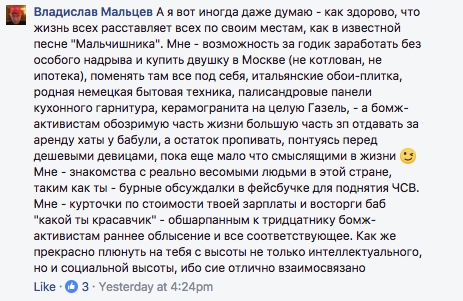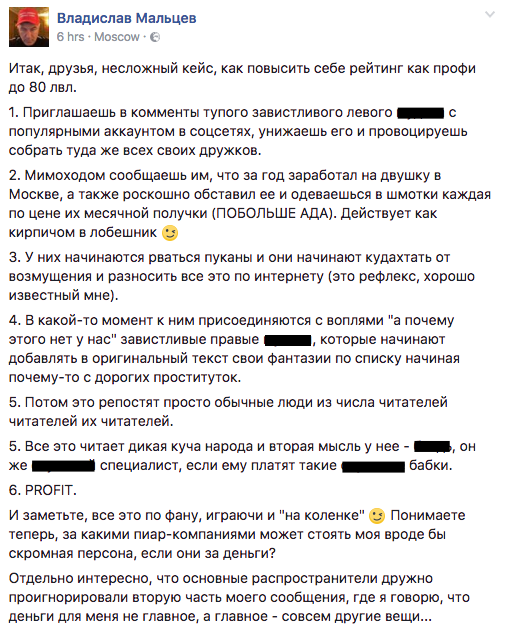 Видимо, так и случилось. Пост Олега Кашина собрал 1 000 лайков и 150 перепостов, после чего Мальцев опубликовал пост, в котором заявил, что это был троллинг: