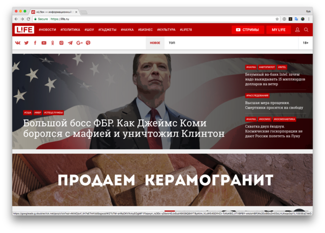 Позже на сайте интернет-издания появился баннер "Продаем керамогранит", который ведет на Facebook Владислава Мальцева.