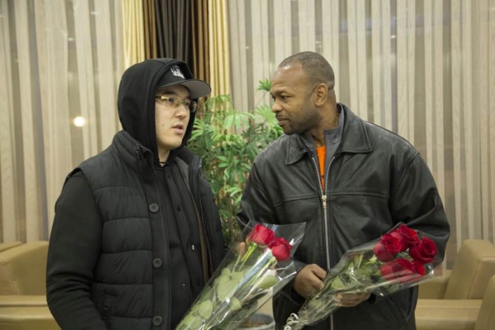 Рой Джонс прилетел в карагандинский аэропорт из Майами в одежде, совсем не подходящей для казахстанского климата. Поэтому организаторы сразу решили отвезти его в торговый центр, где он сам лично прикупил себе теплые вещи. "Здесь Рой Джонс купил себе теплую куртку и обувь, потому что в Казахстане ему было очень холодно. Рой Джонсу понравилась одежда от известной марки. Он перемерил несколько курток в современном бутике и выбрал на свой взгляд одну из лучших. Его не удивишь разными брендами", - сказал Нургазы Жарылгапов.