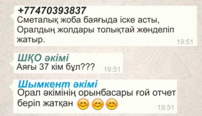 Ролик с "перепиской" акимов в WhatsApp подвергся цензуре