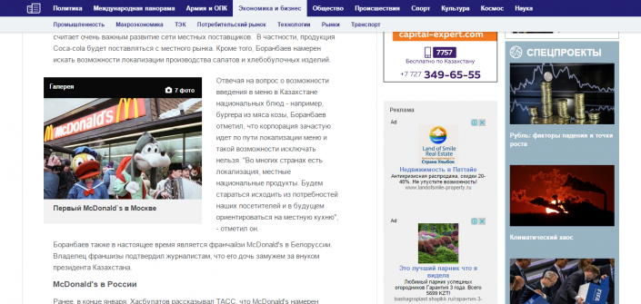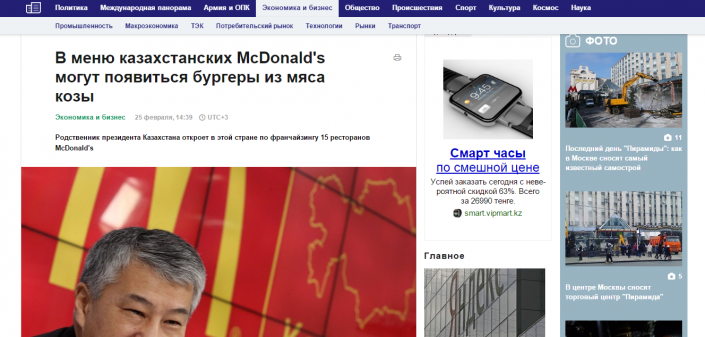 В Астане 8 марта откроется первый ресторан быстрого питания McDonald's. Накануне в Москве прошла пресс-конференция, посвященная этому событию. После мероприятия одно из российских информационных агентств опубликовало новость о том, что "в меню казахстанских McDonald's могут появиться бургеры из мяса козы", передает корреспондент Tengrinews.kz.