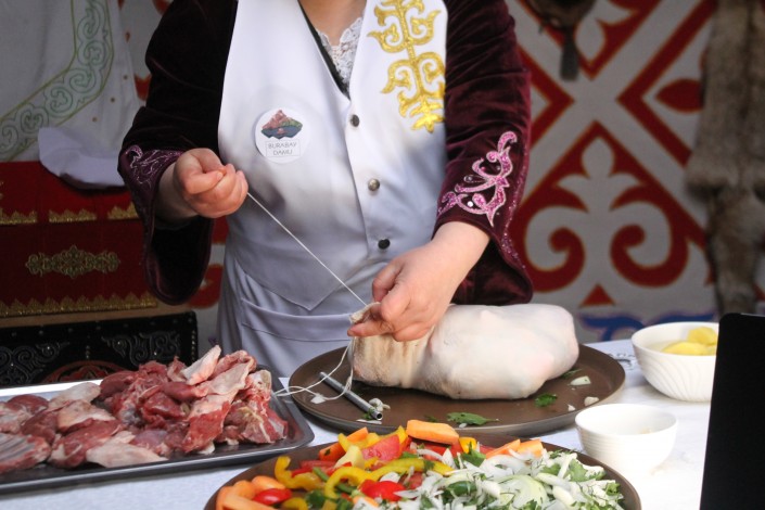 На этом знакомство с казахской культурой не закончилось - Джону Уоррену предложили поучаствовать приготовлении национального блюда - сірне. Данный мастер класс был организован ТОО "Бурабай Даму" УДП РК.