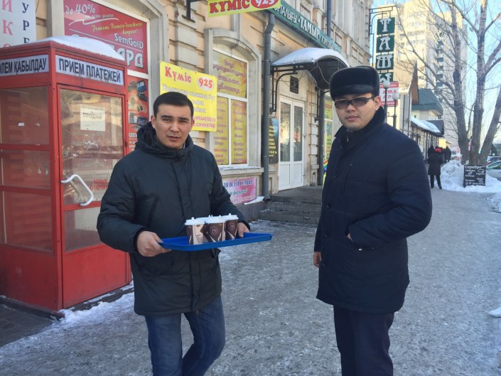К слову, это не единственная акция, которой сегодня Жасулан Курмангалиев удивил семейчан. "Мы дарим тепло!" - под таким девизом он совместно с предпринимателем сегодня угощал прохожих чашкой горячего кофе.