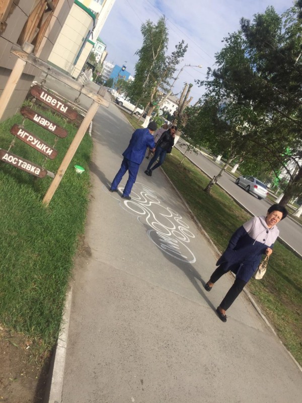 Аким района Сарыарка Нур-Султана Ергали Егемберды предложил встретиться автору сердечек на асфальте дяде Саше. Накануне он разукрашивал тротуары Костаная, подарив горожанам свои знаменитые "послания добра", передает корреспондент Tengrinews.kz.