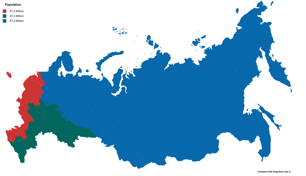 Кроме того, на портале Pikabu были также презентованы и карты других стран, разделенные на три равные части по количеству населения. Так пользователь RobbinBobbin представил Россию.