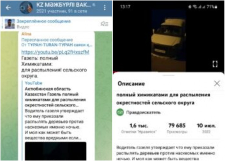 В Telegram пользователи пишут о том, что в сельских регионах Актюбинской области распрыскивают опасные химикаты. Якобы из-за них люди вновь станут болеть COVID-19, и уже этой осенью все регионы страны перейдут в "желтую" зону, согласно некоему тайному плану правительства. Это неправда.