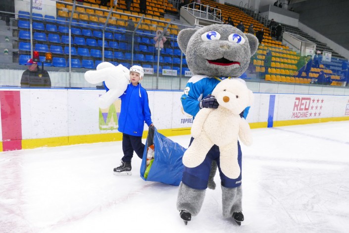 Напомним, на минувших хоккейных матчах 21 и 23 декабря во Дворце спорта прошел сбор мягких игрушек в формате "Мишкопад". По окончании игр болельщики с трибун выбрасывали плюшевых зверей на лед. 27 декабря хоккеисты "Торпедо" привезли все собранные игрушки в Центр матери и ребенка, чтобы поздравить маленьких пациентов с наступающим Новым годом.