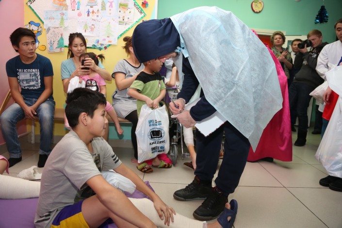 В Усть-Каменогорске состоялась предновогодняя благотворительная акция "Наши главные победы - детям!". Игроки хоккейного клуба "Торпедо" совместно с генеральным спонсором команды - компанией "Казцинк" посетили Центр матери и ребенка и вручили детям новогодние подарки. Поздравлять ребят, которым предстоит встретить Новый год в больнице, для хоккеистов и представителей горно-металлургической компании стало уже доброй традицией.