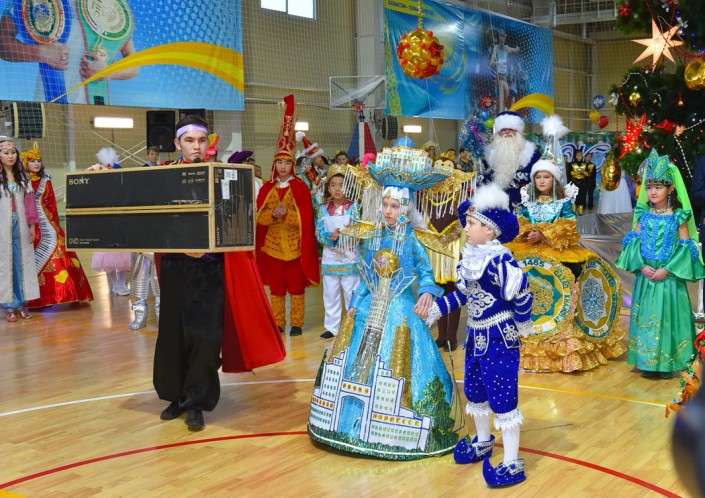 Образ, который называется "Королева независимости", был придуман в Айыртауской школе-интернате для детей-сирот и детей, оставшихся без попечения родителей. Девочка завоевала гран-при на президентской елке.