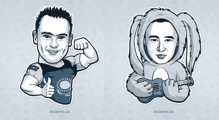 Образы отечественных знаменитостей были разработаны под руководством арт-директора дизайн-бюро igraphic.kz Владимира Лукашова известным российским дизайнером Анастасией Ахметзяновой. "Всего мы создали стикеры для 10 казахстанцев, среди которых Илья Ильин, Баян Есентаева, Геннадий Головкин, Кайрат Нуртас, Сабина Алтынбекова, Алишер Еликбаев и другие. Ими можно заменить стандартные "смайлики" в телеграмме", - рассказал директор дизайн-бюро Баглан Айдашов. Основной целью проекта называется повышение узнаваемости казахстанцев среди зарубежных пользователей.
