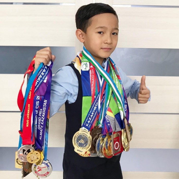 "Мы уведомили Международную федерацию таэквондо, чтобы нам в особом порядке разрешили проходить аттестацию. Мы показали видео, как он занимается, и они дали добро, сделали исключение. И теперь он является самым молодым обладателем черного пояса в мире. Потом такого исключения ни для кого не давали. И чтобы не показывать такой большой разницы в возрасте, они сертификат выдали ему в девять лет. Хотя экзамен сдавал он в восемь", - отметил Ерлан Абенов.