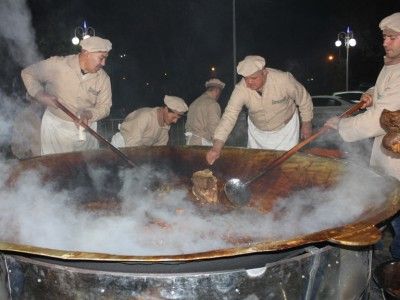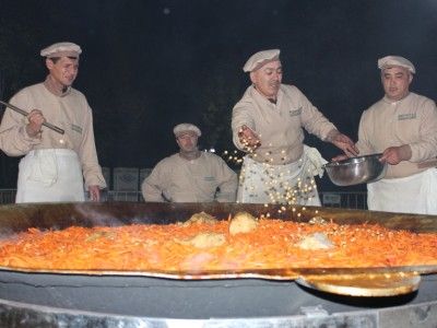 10 ноября на фестивале плова в Душанбе в специальном казане впервые приготовили тонну плова. Для блюда мастера использовали 250 килограммов риса, 200 килограммов мяса, 350 килограммов моркови, 90 литров растительного масла, 30 килограммов лука, пять килограммов изюма, по одному килограмму зиры, молотого перца и барбариса, сообщает Avesta.