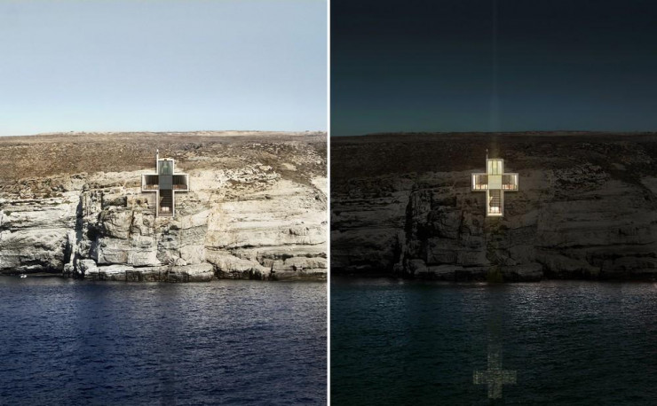 8. Lux Aeterna/Часовня Святого Креста. Остров Серифос, Греция. Это проект подземной часовни; единственный фасад, имеющий форму креста, будет обращен к Эгейскому морю и послужит своего рода духовным маяком для паломников.