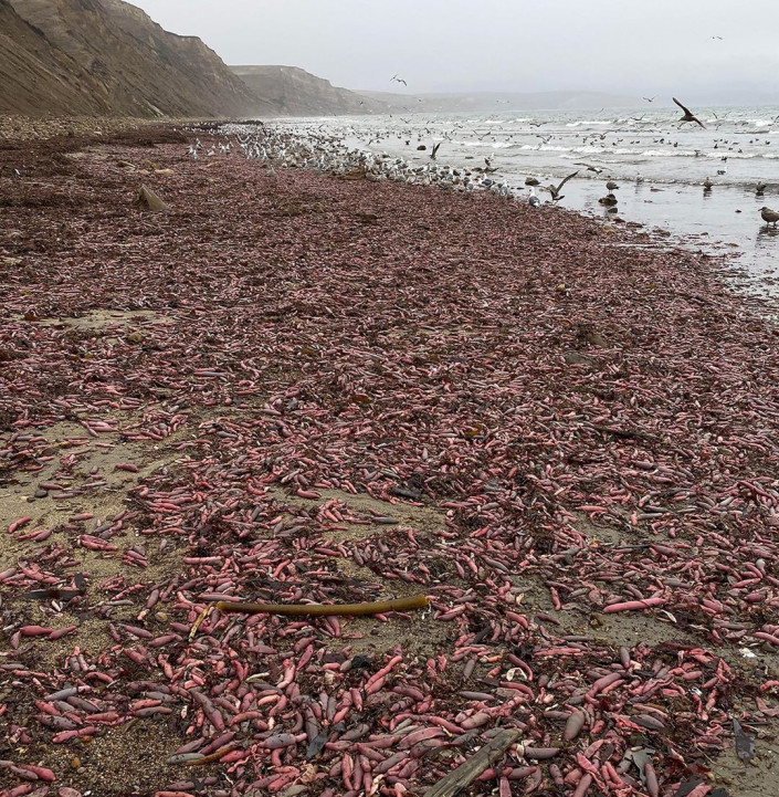 В Калифорнии на берег пляжа Дрейкс Бич (в 50 милях к северу от Сан-Франциско) выбросило тысячи морских многощетинковых червей - эхиурид. В англоязычных странах из-за своей формы это животное получило неофициальное название "рыба-пенис", сообщает usa.one.