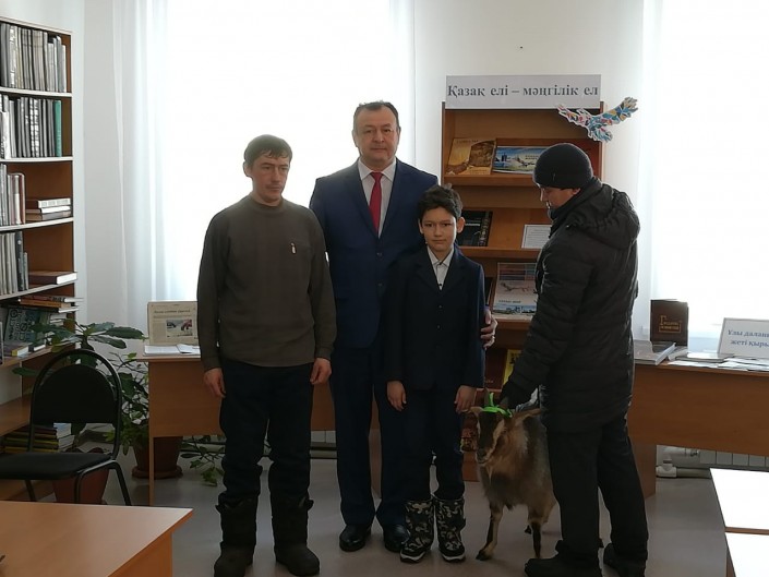 Накануне аким села Теренколь Павлодарской области Аждар Жусупов подарил пятикласснику живую козу за 125 прочитанных книг.