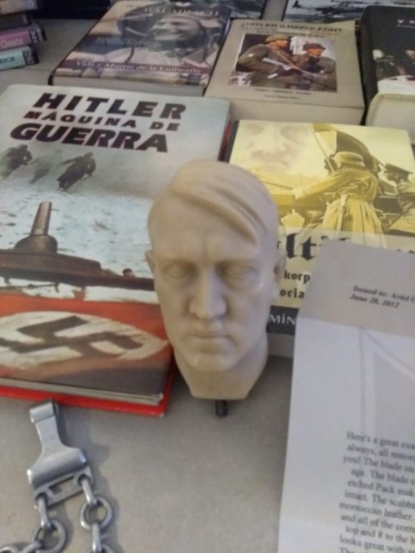 В числе обнаруженных предметов - бюст Гитлера, сабли и кинжалы со свастикой и сертификатами подлинности, блокноты с записями, старинные фото нацистских лидеров, солдатские медали и посуда с гравюрами СС. Также изъяты военная форма, книги и другие вещи.