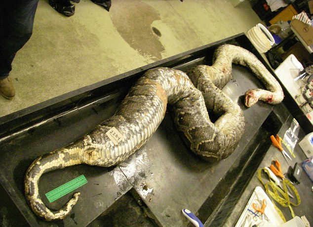 Исследователи определили, что хищник длиной около пяти метров проглотил самку оленя и двух оленят. По всей видимости, животные были съедены не сразу, а в течение около трех месяцев.