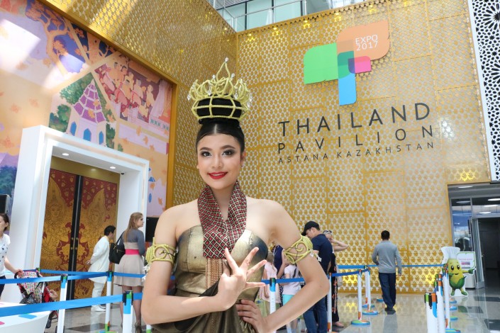 "Перед входом в павильон гости могут участвовать в розыгрышах уникальных биосумок, узнать много интересных фактов о Таиланде и стать ближе к культуре тайцев. Внутри павильона гостей знакомят с маскотом - кукурузой Палангом. Во втором выставочном зале наши гости приходят в восторг от 3D-шоу, которое было подготовлено нашими тайскими коллегами. А в третьем зале культура и технологические возможности Таиланда перемешиваются и дают уникальную атмосферу", - рассказывает волонтер павильона Нурсултан Ильяс. Он также считает, что павильон Таиланда с технической точки зрения - один из самых прорывных объектов EXPO