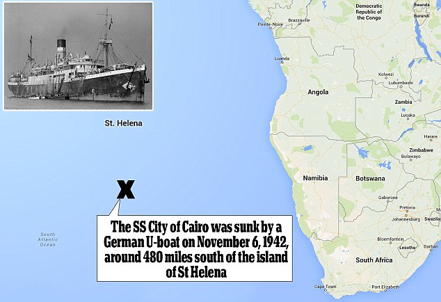 Ценный груз находился на борту британского парохода City of Cairo, затопленного в ноябре 1942 года нацистской подводной лодкой. Судно следовало из Бомбея в Англию и перевозило 100 тонн серебряных монет. В 480 милях к югу от острова Святой Елены пароход был атакован немецкой субмариной и затонул.