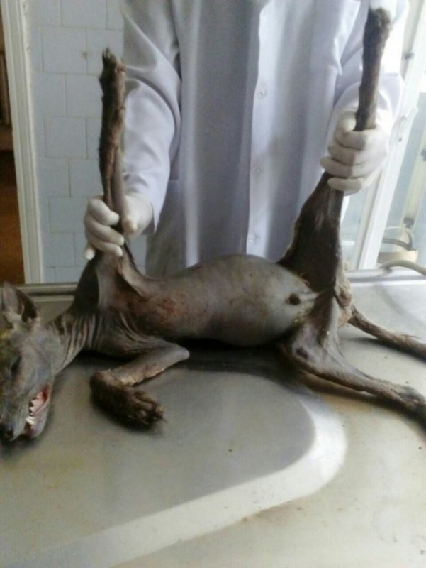 Пока ветеринары не могут идентифицировать странное существо. "Неестественно длинные зубы, у собаки таковых нет, длинные задние ноги и длинные шея и уши. Уши похожи на уши африканской лисицы", - отметил директор региональной государственной лаборатории ветмедицины Валерий Допиряк.