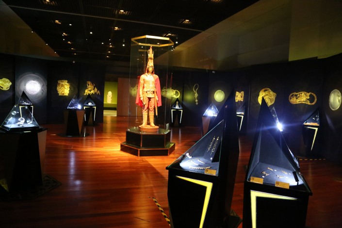 На выставке в Государственном музее-заповеднике "Казанский Кремль" можно увидеть реконструкцию "Золотого человека" в расшитой золотыми бляшками одежде, в головном уборе особой конической формы, который украшают золотые пластины в виде золотых стрел, снежных барсов, архаров, лошадей и птиц, и коллекцию археологических находок эпохи раннего железного века (V – IV веков до нашей эры), сопровождавших захоронение этого знатного сакского молодого воина (по мнению археологов, его возраст 17-18 лет).