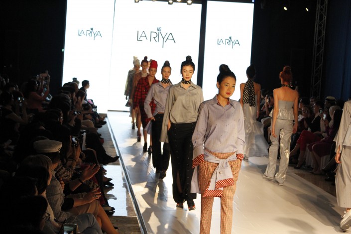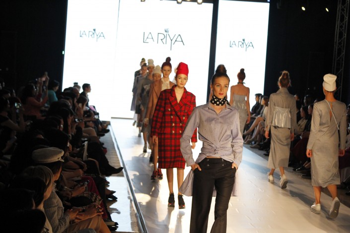 В коллекции постоянного участника KFW - модельера Ларии Джакамбаевой - преобладают свободный стиль и светлые оттенки. "Это стрит-стайл. В основу легла мужская рубашка. Я считаю, что это незаменимая вещь в гардеробе современной девушки, потому что это уже must have. То есть ее можно носить с брюками и с юбками, и отдельно, и миксовать, в спортивном стиле, в классическом - в общем, рубашка сейчас перешла в такую категорию, что ее можно носить везде", - рассказала дизайнер.