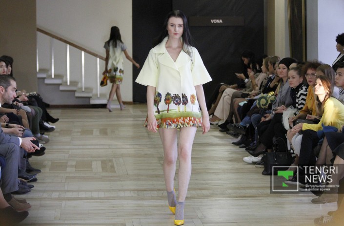Алена Дрыгула (VONA) из Украины создала линию, вдохновившись детскими рисунками, поэтому в коллекции на смену четким линиям придет некая непосредственность, а насыщенность ярких красок придала образу идейность и неповторимость.