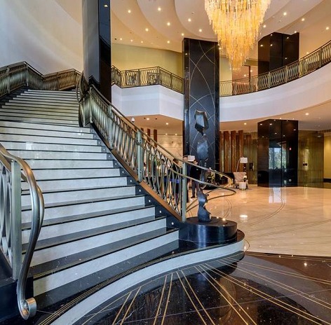 Лобби столичного отеля встречает своих гостей великолепной лестницей в мраморном обрамлении. Современный камин с зеркальной стеной находится в центре пространства, отражая картины на противоположной стене. Добавляет роскоши и гигантская люстра, напоминающая сотни солнечных лучей, блистающих над камином. Над архитектурой и интерьером The Ritz-Carlton в Астане трудились признанные профессионалы, команды дизайнеров со всего мира.