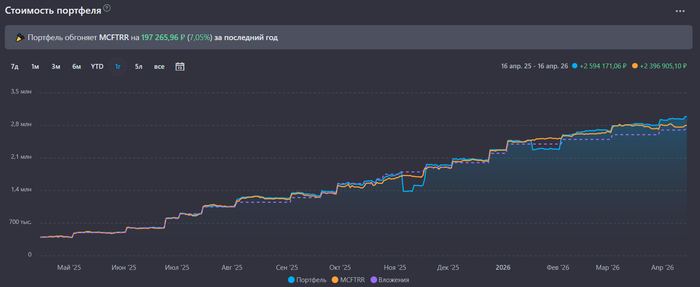 Продолжаю свои регулярные инвестиции, не смотря на внешние геополитические риски, проблемы внутри страны и собственные трудности. Следующую покупку акций планирую совершить уже 1 мая 2026 года.