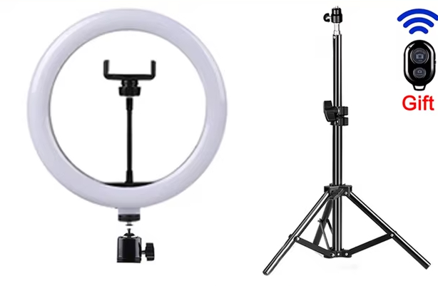 Осветительный прибор обеспечивает равномерное освещение для съемки. Регулировка температуры света расширяет возможности. Держатель для телефона упрощает работу. Подходит для контента.