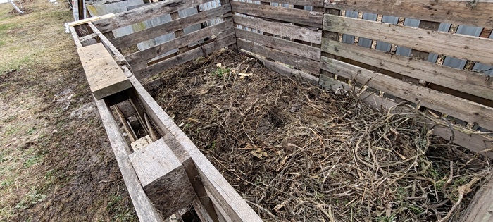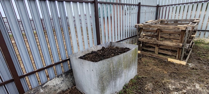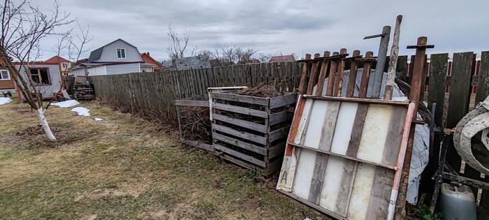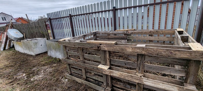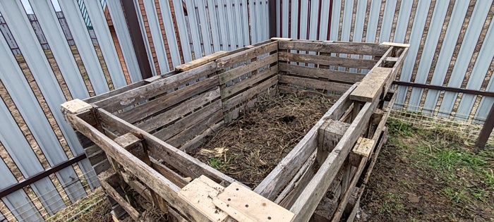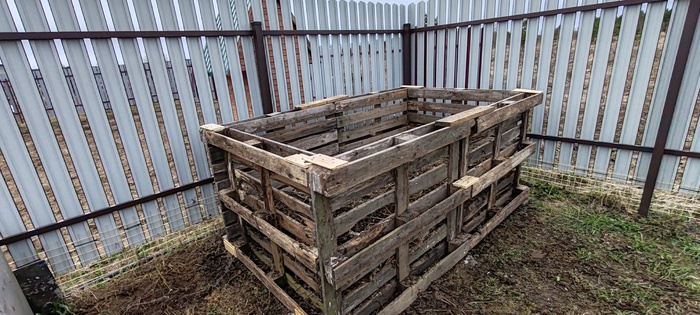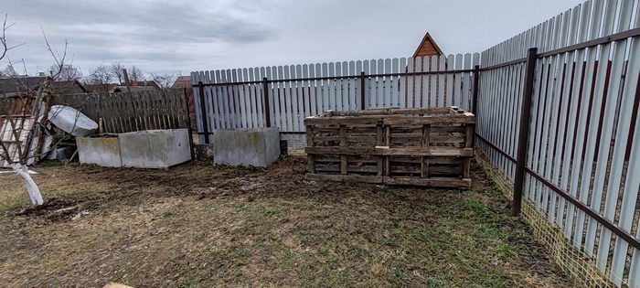 Супруга осталась довольна, уже строит планы на посадки в этом году . Посмотрим, как будет вести себя наше новое строение, думаю,что хватит не на один год, а если палеты подгниют, то есть запас и цена вопроса минимальная, было бы желание. Никаких дверей для вытаскивания перегноя не стал делать, раскрутить и освободить одну палету- пять минут времени, так что чем проще , тем лучше и надёжнее, каркас действительно получился вместительным и надоедным, думаю, что процесс гниения с участием воздуха пойдет нормально, а мы поможет, купим жидкость для ускорения процесса, так что не спешите тратить деньги, попытайтесь использовать то,что рядом, такой вот мой простой , как сейчас модно говорить лайфхак.